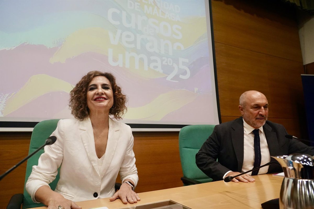 La vicepresidenta primera y ministra de Hacienda del Gobierno de España, María Jesús Montero, ha ofrecido este jueves la conferencia 'Políticas económicas que transforman. Hechos frente a dogmas' en el marco de los Cursos de Verano de la Universidad de Málaga (UMA) donde ha destacado el papel "esencial" de las universidades públicas ante "la deriva privatizadora" de algunos gobiernos, señalando "sin paños calientes" a los de Madrid y Andalucía, presididos por Isabel Díaz Ayuso y Juanma Moreno.