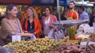 Dolors Montserrat, portavoz del PP en el Parlamento Europeo, y Carolina España, en un reparto informativo en el Mercado de Atarazanas de Málaga capital. - PP DE MÁLAGA