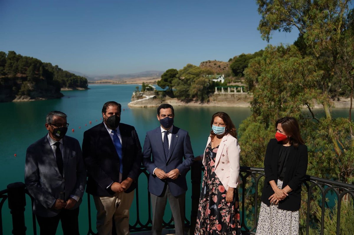 Moreno, posteriormente, ha realizado un recorrido por la presa junto a la consejera de Agricultura, Ganadería, Pesca y Desarrollo Sostenible, Carmen Crespo; el alcalde de Ardales, Juan Alberto Naranjo; el presidente de la Diputación provincial, Francisco Salado, y la delegada del Gobierno de la Junta de Andalucía en Málaga, Patricia Navarro, entre otras autoridades.
