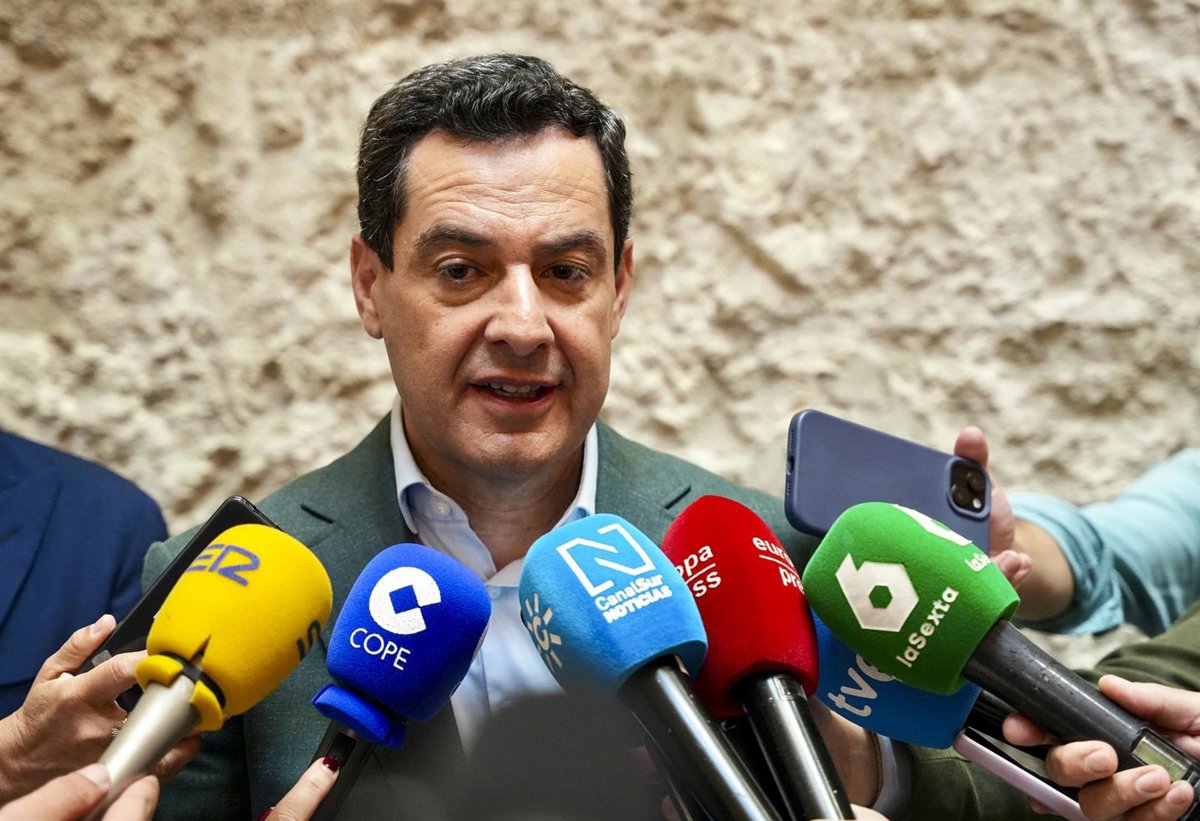Archivo - El presidente de la Junta de Andalucía, Juanma Moreno, durante la inauguración de la exposición ‘Almayéutica’ en el Ayuntamiento de Sevilla, a 13 de junio de 2025 en Sevilla (Andalucía, España).- María José López - Europa Press - Archivo