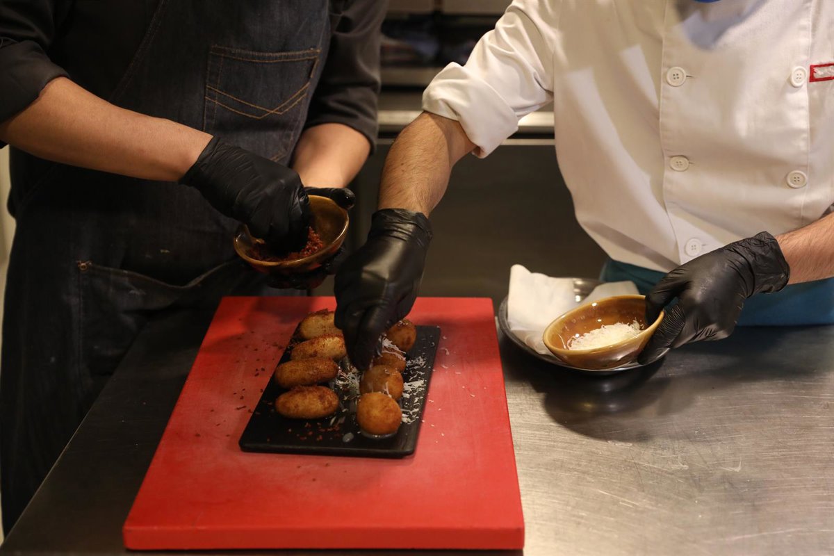 Un camarero y un cocinero elaboran un plato. En Madrid (España), a 16 de octubre de 2020. - Marta Fernández - Europa Press - Archivo