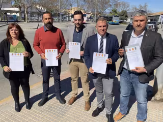 El concejal de Transporte del Ayuntamiento de Vélez-Málaga, José María Domínguez; el Senador veleño, Víctor González; el alcalde de Almáchar, Antonio Yuste; el alcalde de El Borge, Raúl Vallejo, y la concejala de Moclinejo, María José Torres, han explicado junto a la estación de autobuses de la capital de la Axarquía que han iniciado una campaña de recogida de firmas.