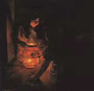 LLUÍS GRANER Niñas a la luz de un farol c. 1899 Colección Carmen Thyssen-Bornemisza - COLECCIÓN CARMEN THYSSEN-BORNEMISZA