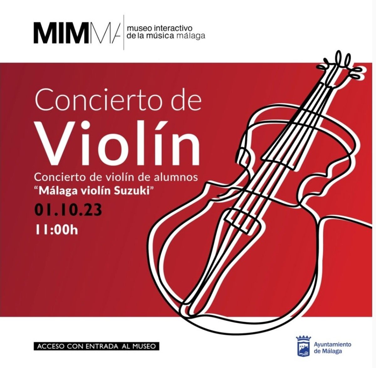 El Museo Interativo de la Música de Málaga (Mimma) acoge dos concieros de los alumnos de Málaga de violín Suzuki. En concreto, los domingos 1 y 8 de octubre, tendrán lugar dos conciertos en el Living Lab del museo.