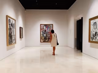 A través de más de ochenta obras, entre collages, pinturas, pasteles de gran formato, dibujos y aguafuertes, el recorrido abarca desde sus trabajos en los años sesenta hasta las escenas ricamente estructuradas y estratificadas de las dos primeras décadas de este siglo.