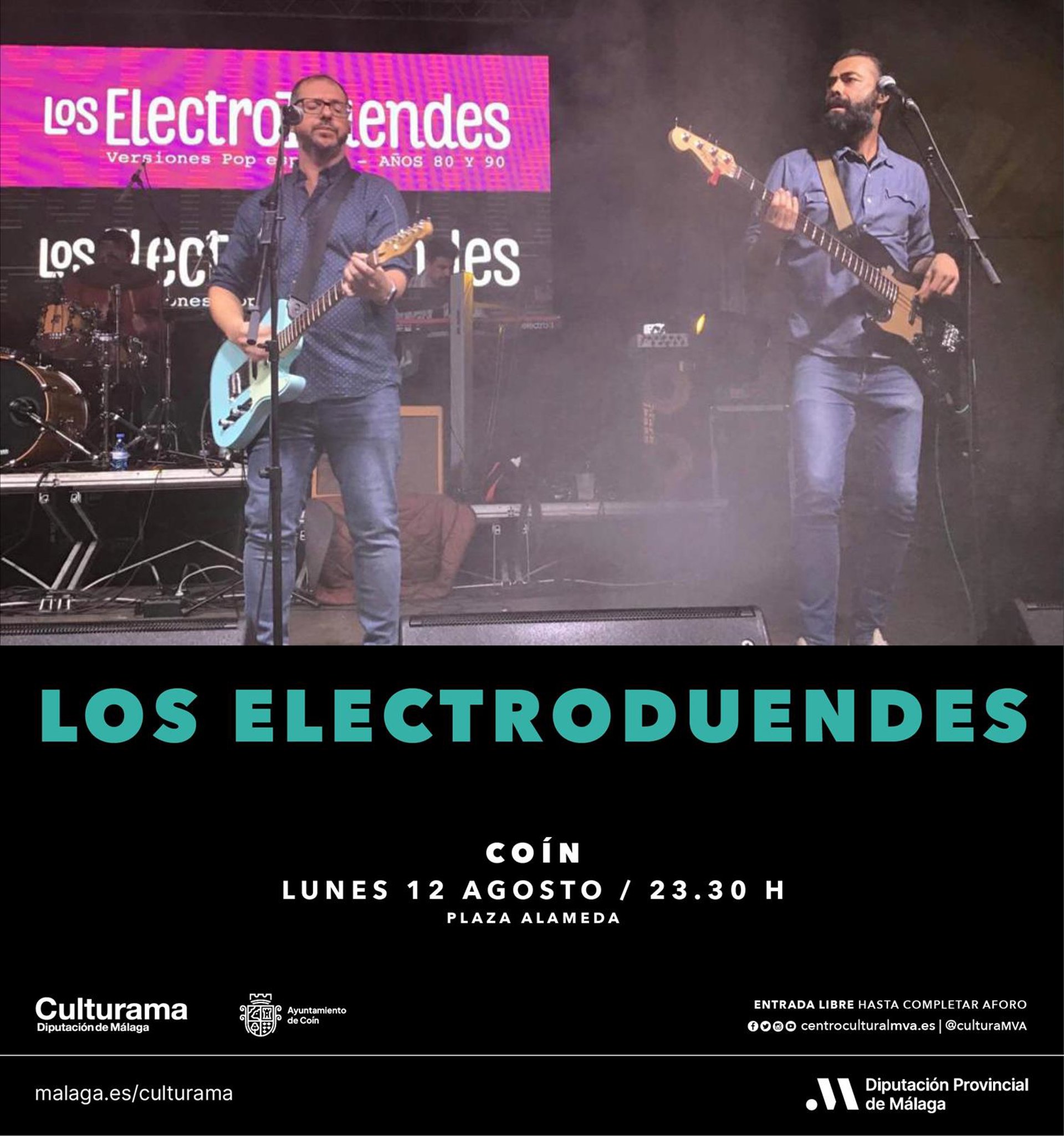 La programación arranca este lunes, 12 de agosto, con la actuación del grupo 'Los Electroduendes' interpretará versiones pop en español de temas conocidos, a partir de las 23.30 horas, en la plaza Alameda de Coín. Con entrada libre hasta completar aforo, la banda rendirá homenaje a la música española de los 80 y 90.