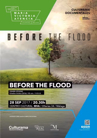 El centro cultural provincial María Victoria Atencia (MVA) proyecta este jueves el documental 'Before the Flood' a las 20.30 horas, con entrada libre hasta completar el aforo. Es un filme que ahonda en los efectos del cambio climático en nuestro entorno y cómo la sociedad puede prevenirlos, incluyendo la salvación de especies en peligros de extinción. Está producido por Martin Scorsese y Leonardo DiCaprio, quien, además, ejerce de narrador, y distribuido por National Geographic.