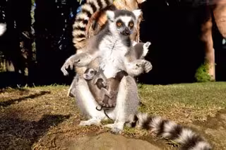 Los lémures de cola anillada o Catta son realmente pequeños al nacer, pesando una media de 65 gramos, para luego alcanzar en edad adulta los cuatro kilos. Los bebés de esta especie ya nacen con los ojos abiertos y se agarran desde el primer momento al pelo de la madre, haciendo ésta una vida normal y acarreando a los pequeños desde que nacen.