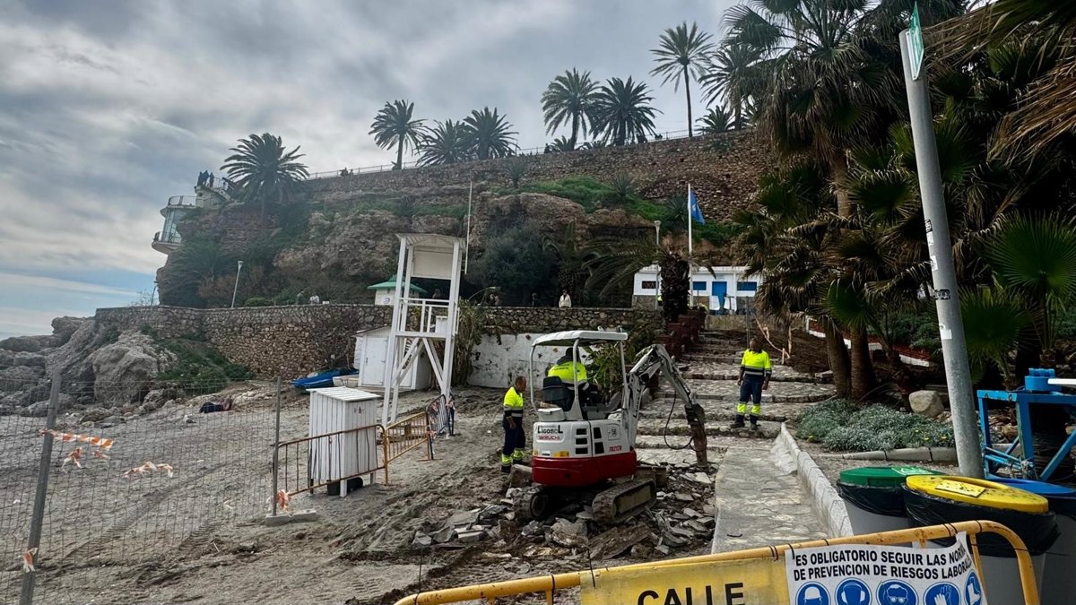 El Ayuntamiento de Nerja precisa en sus redes sociales que el tramo afectado está situado junto a la caseta de pescadores y el acceso al ascensor del Parador, y la senda hasta Carabeillo y el mirador del Bendito, zona que ha quedado cerrada al tránsito peatonal debido a los daños ocasionados por los temporales.