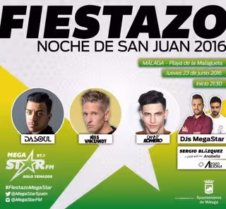 La quema del 'juá', que este año representa el mosquito tigre; las melodías andaluzas de una orquesta y los fuegos artificiales serán los protagonistas de la noche de San Juan en la playa de la Misericordia; mientras que en La Malagueta, el Fiestazo Megastar, amenizará la madrugada del 24 de junio.
