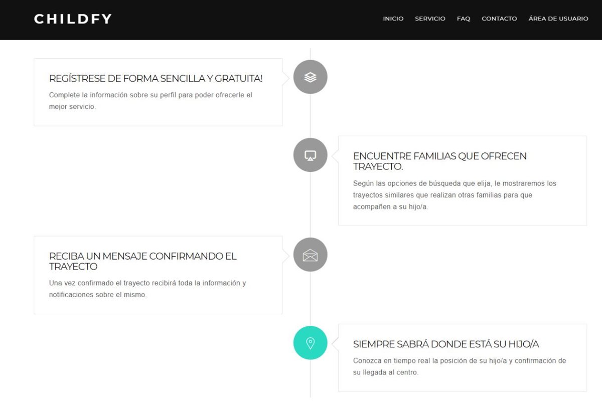 Captura de la página de Childfy, startup malagueña que ofrece una plataforma para facilitar la movilidad a los centros educativos - DIPUTACIÓN DE MÁLAGA