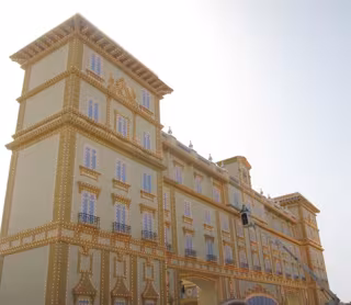 La nueva portada de la Feria de Málaga, que representa el Hotel Miramar, tendrá una altura de 18 metros y para su construcción se han necesitado 968 horas de trabajo. La sustitución de la anterior, que simulaba el edificio de la Tabacalera, se ha producido porque "sus estructuras no garantizaban la seguridad" y sus paneles e instalación eléctrica "estaban muy deteriorados".