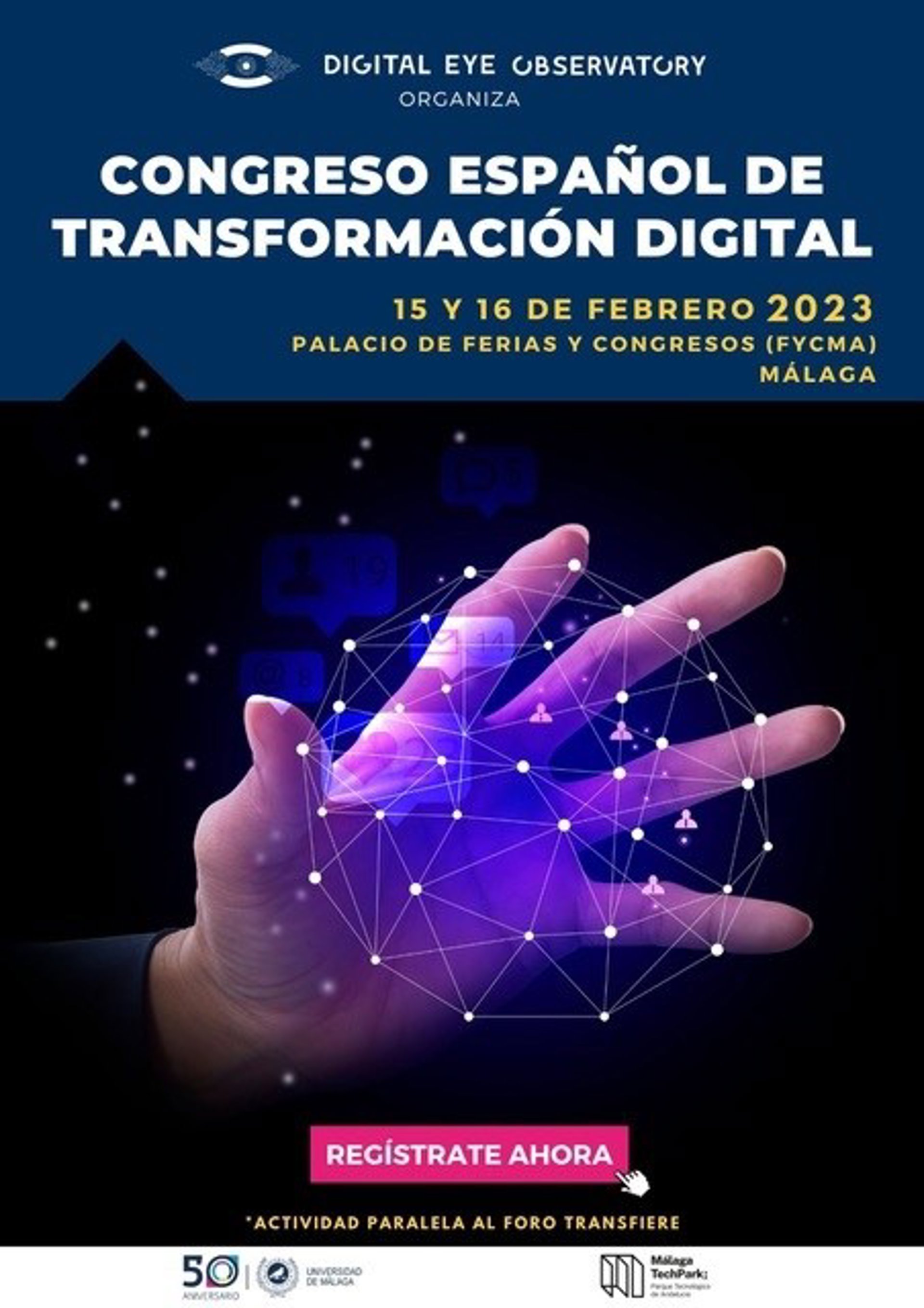 El observatorio Digital Eye, puesto en marcha por la Universidad de Málaga (UMA) y Málaga TechPark, organiza el Congreso Español de Transformación Digital (CETDi) los días 15 y 16 de febrero en el Palacio de Ferias y Congresos de Málaga (Fycma), en el marco de Foro Transfiere.