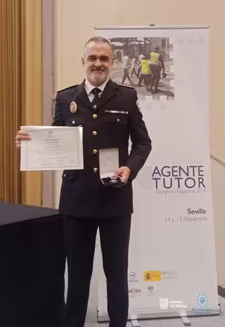 El oficial del Grupo de Investigación y Protección (GIP) la Policía Local de Málaga Alejandro Márquez ha sido condecorado en reconocimiento a su trayectoria en la prestación del servicio de protección y prevención de situaciones de riesgo social en menores de edad del municipio de Málaga por la Asociación Nacional de Agentes Tutores (ANAT) en el Congreso Nacional 2024.