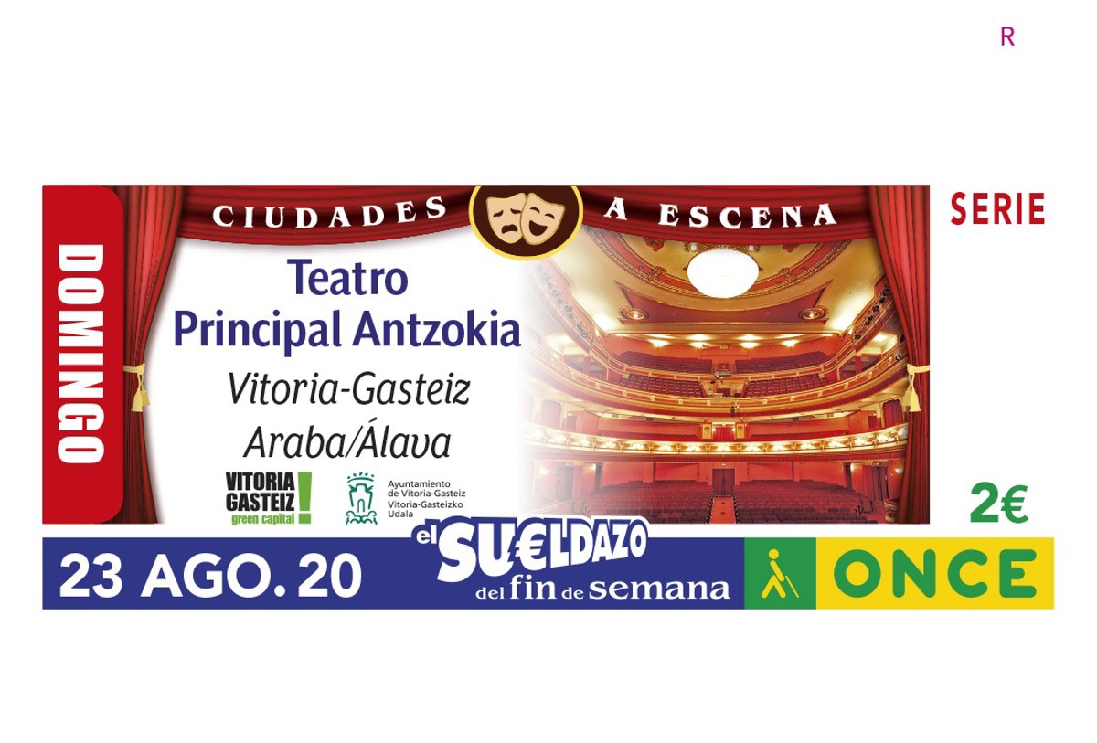 El cupón del domingo 23 de agosto estaba dedicado al Teatro Principal Antzokia de Vitoria- Gasteiz, incluido en la serie de cupones 'Ciudades a escena', que la ONCE está dedicando a los principales teatros de toda España.