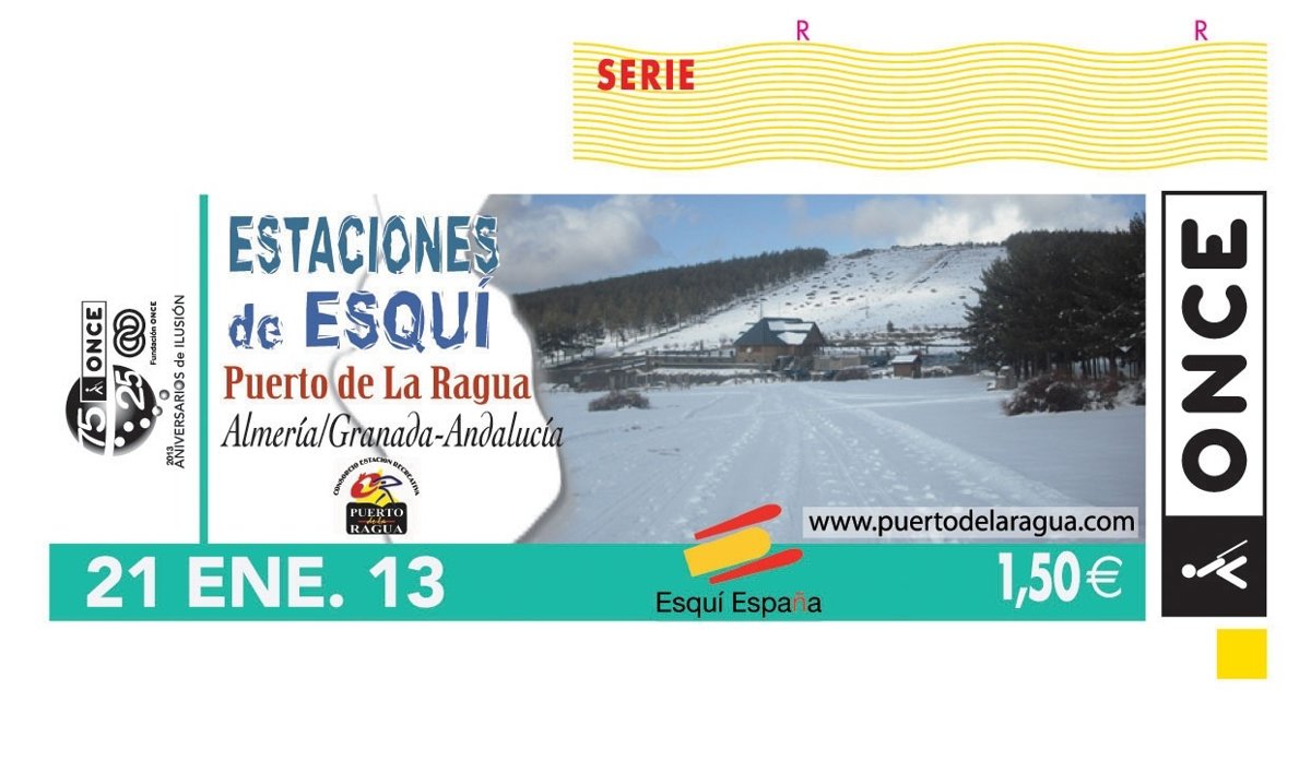 El cupón de este pasado lunes tenía como protagonista el puerto de montaña de La Ragua --situado entre las provincias de Granada y Almería--, dentro de la serie de motivos dedicados a las estaciones de esquí españolas.