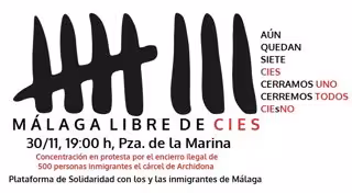La Plataforma de Solidaridad con los Inmigrantes de Málaga, que agrupa a más de 20 entidades sociales, ha convocado una concentración el próximo jueves 30 de noviembre en la plaza de la Marina de la capital en rechazo al encierro "ilegal" de más de medio millar de personas inmigrantes en la cárcel de la localidad malagueña de Archidona.