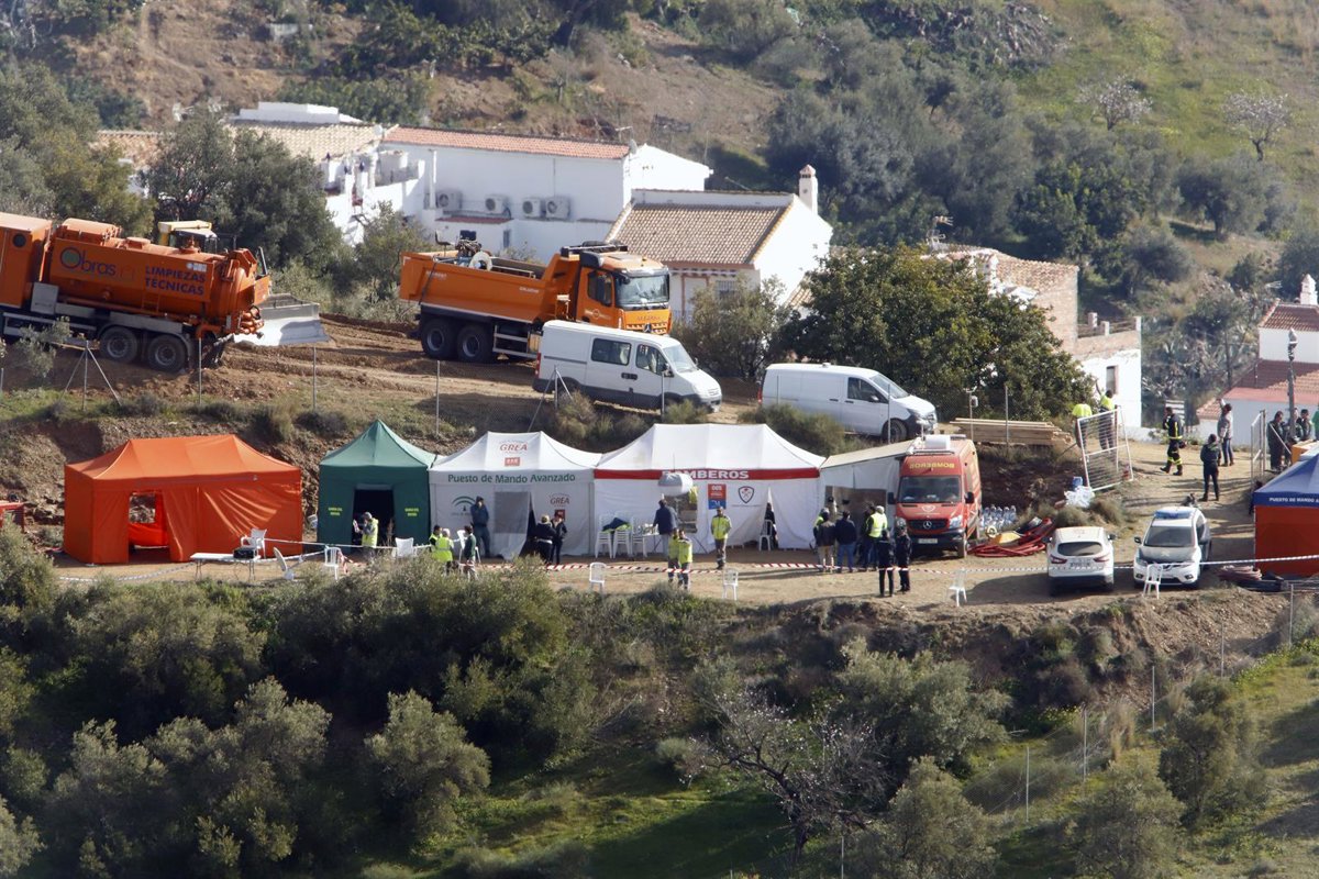 La intención es, ha dicho, "que a lo largo del día y de la noche esté ejecutada esa plataforma de 30 metros para poder empezar la perforación mañana por la mañana --por este viernes--, pero puede que esto evolucione". Las dos prospecciones verticales se harían en paralelo dejando aproximadamente en medio el orificio en el que está el niño. Luego habrá que hacer dos galerías horizontales para conectar con el pozo.