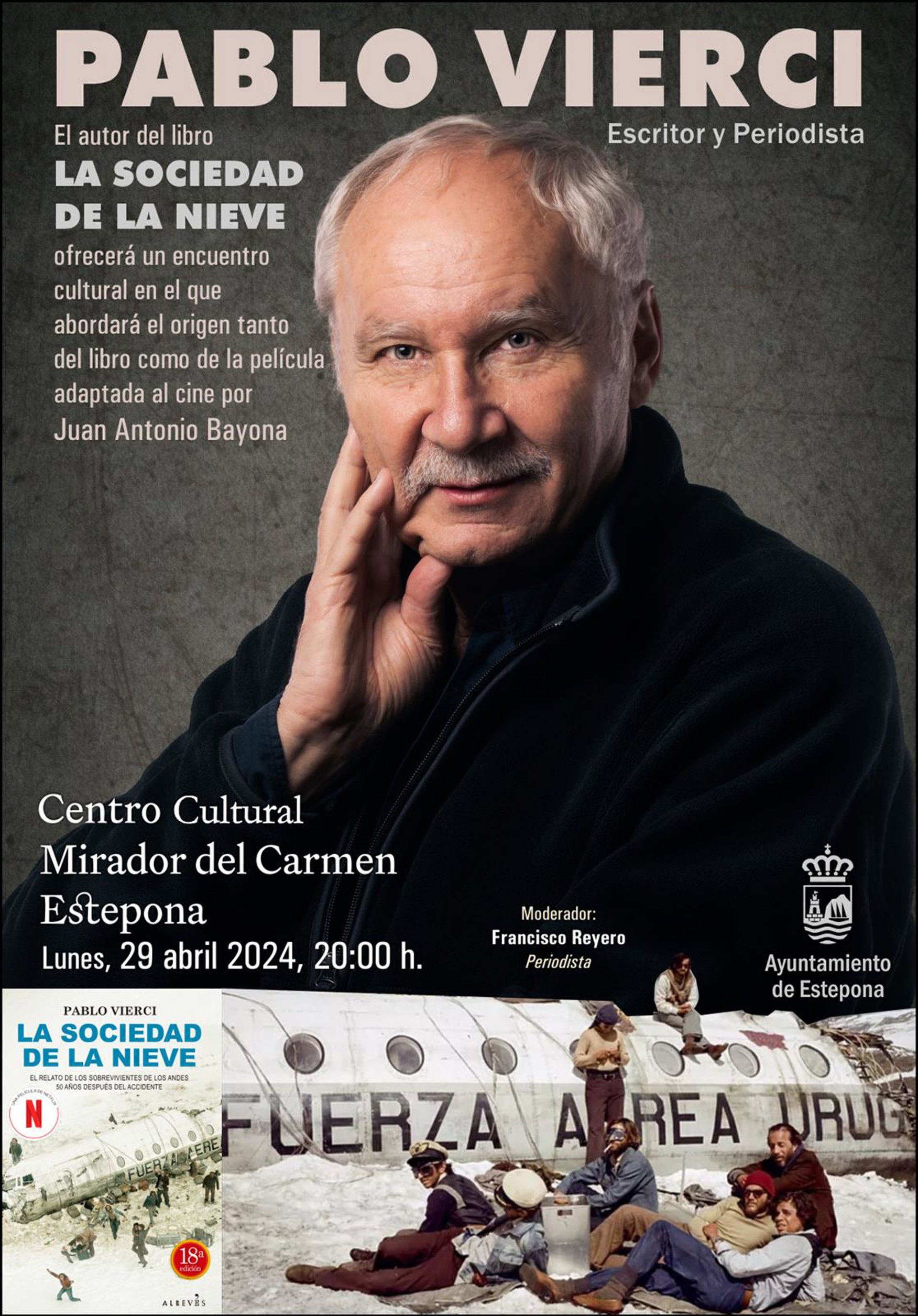 La cita, que tendrá lugar a las 20.00 horas con entrada libre hasta completar aforo, contará con el periodista Francisco Reyero como moderador, han señalado desde el Consistorio de Estepona en un comunicado. Pablo Vierci (Montevideo, 1950) es autor de una docena de libros, entre ellos 'La sociedad de la nieve', publicado en 2008, traducido al portugués, y reeditado en 2022 (Alrevés Editorial), traducido al inglés, italiano y catalán.