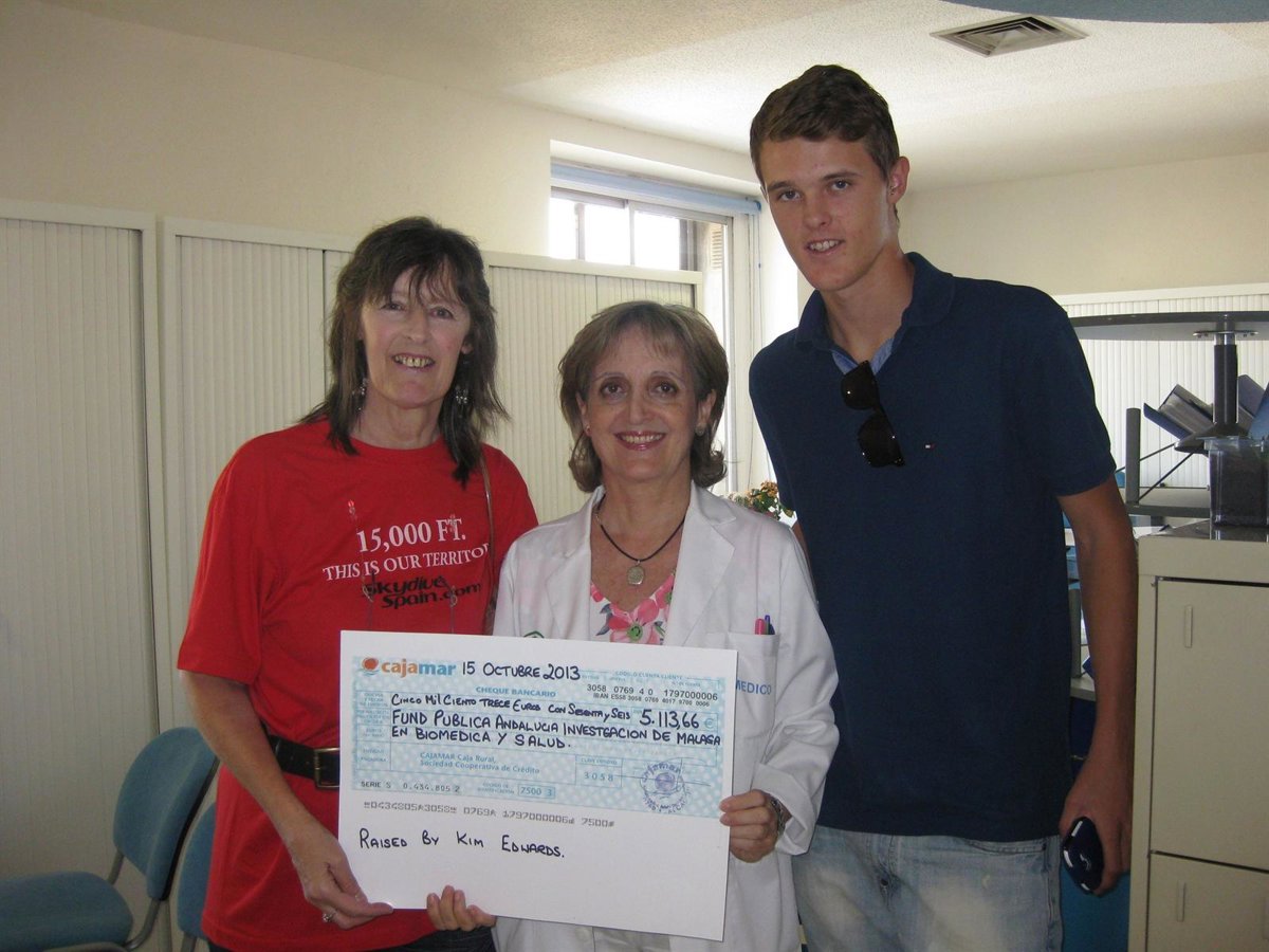 Una paciente británica, Kim Edwards, atendida por profesionales de la Unidad de Gestión Clínica de Hematología y Hemoterapia del Hospital Regional de Málaga desde hace siete años, ha recaudado desde el comercio en el que trabaja, en la localidad malagueña de Alcaucín, más de 5.000 euros para la investigación en leucemias.
