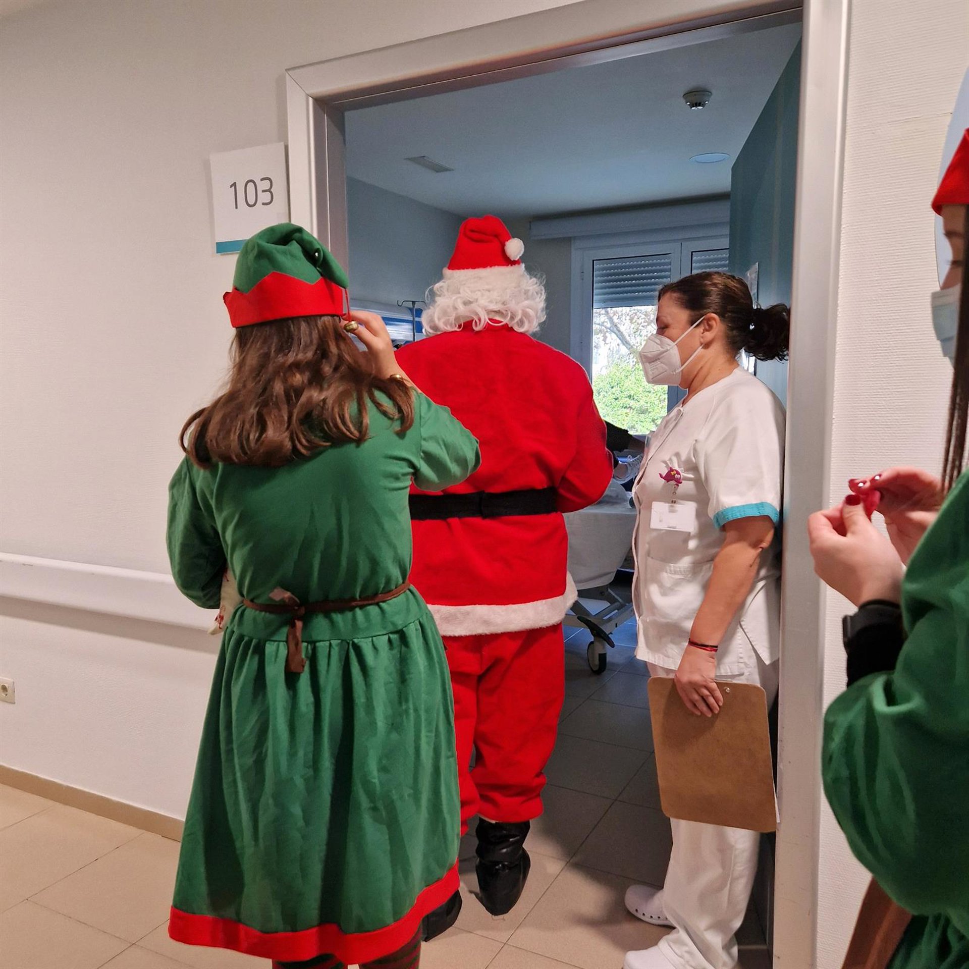Sorpresa inesperada para los más pequeños de la casa en Quirónsalud Marbella. Este martes Papa Noel y sus elfos ayudantes se han acercado al hospital y a las consultas de Urgencias de Pediatría para visitar a los niños que estaban ingresados o que han tenido que acudir al médico en la mañana de este día.