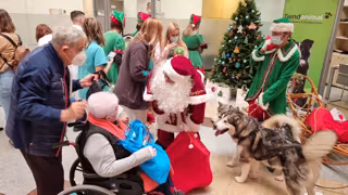 Los pacientes y el personal del Hospital Quirónsalud Málaga han recibido un año más en el día previo a Nochebuena la visita de Papá Noel y sus acompañantes, entre los que se encuentran cuatro elfos y una manada de perros encargada de guiar el trineo.
