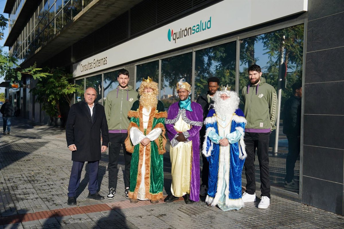 Visita al Hospital Quiron Malaga de los reyes magos y jugadores del Unicaja Baloncesto. - QUIRÓNSALUD MÁLAGA