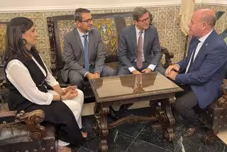 Paradela se ha reunido este lunes con el alcalde antequerano, Manuel Barón, junto al delegado territorial, Carlos García, y la teniente de alcalde portavoz, Ana Cebrián; encuentro en el que han analizado asuntos relacionados con la actividad industrial del municipio e iniciativas como el Puerto Seco.