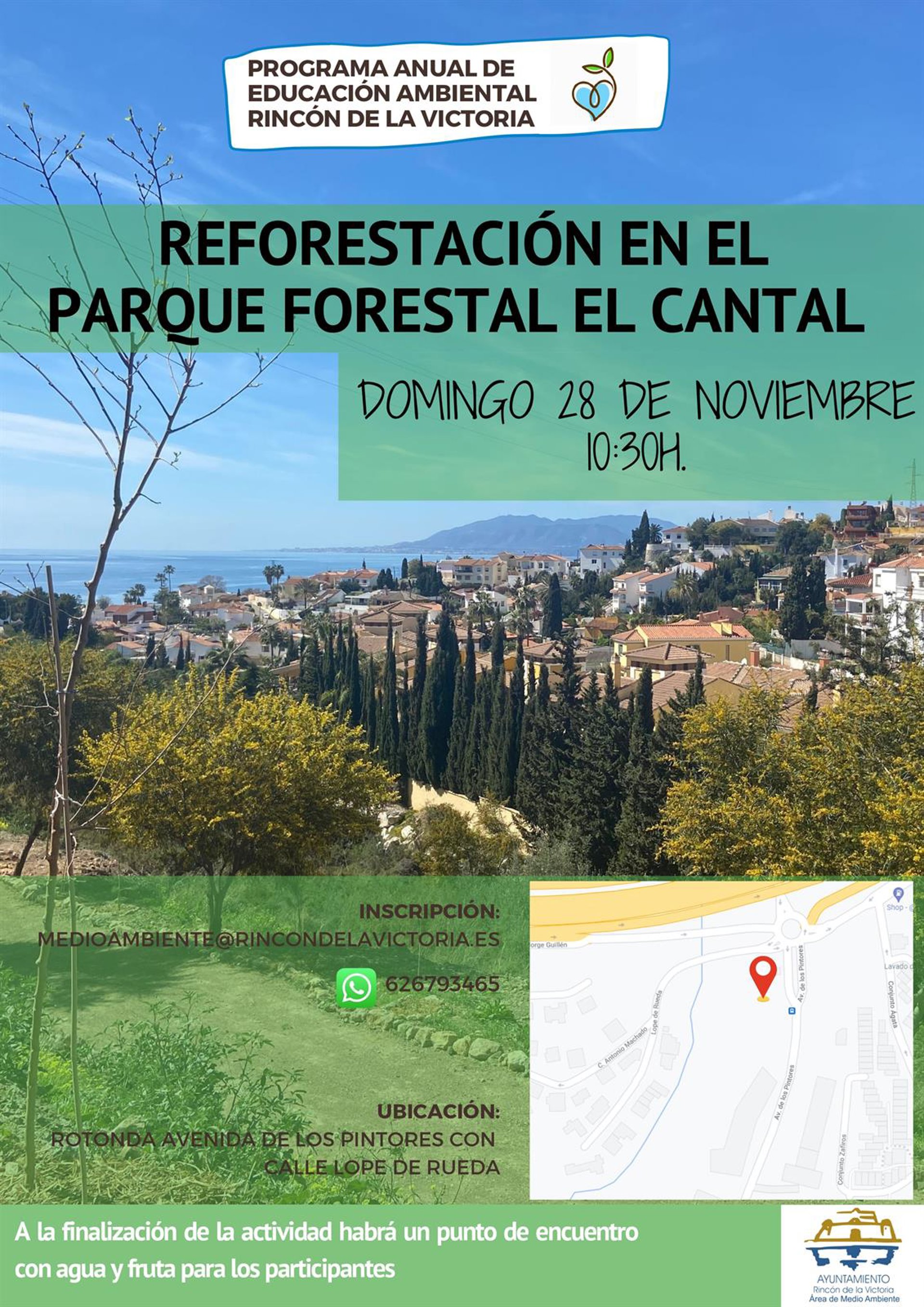 La Concejalía de Medio Ambiente del Ayuntamiento de Rincón de la Victoria (Málaga) ha informado de la celebración de una nueva actividad de reforestación enmarcada en Programa Anual de Educación Ambiental para el próximo 28 de noviembre en el Parque El Cantal.