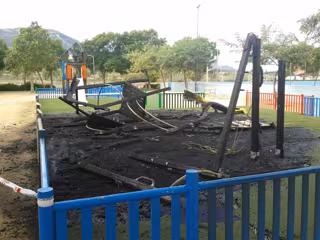 El parque infantil situado en calle Alonso de Mudarra, en el barrio de La Noria del distrito de Churriana de la capital, ha quedado prácticamente destrozado por un incendio tras sufrir un acto vandálico. Además, el fuego ha afectado a un árbol de cuatro metros de la especie 'brachichitum'.