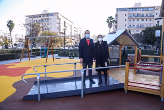 El Parque Litoral 25 de Noviembre estrena una zona de juego infantil totalmente accesible. La concejala de Sostenibilidad Medioambiental, Gemma del Corral, acompañada del concejal responsable del distrito de Carretera de Cádiz, Luis Verde, han visitado este martes esta nueva zona de juego que sustituye a la anterior y han informado, que esta actuación municipal ha supuesto una inversión de 112.076,48 euros respondiendo a una demanda de los vecinos, quienes también han participado en la visita mostrando su satisfacción por este nuevo punto de juegos infantiles totalmente accesible.