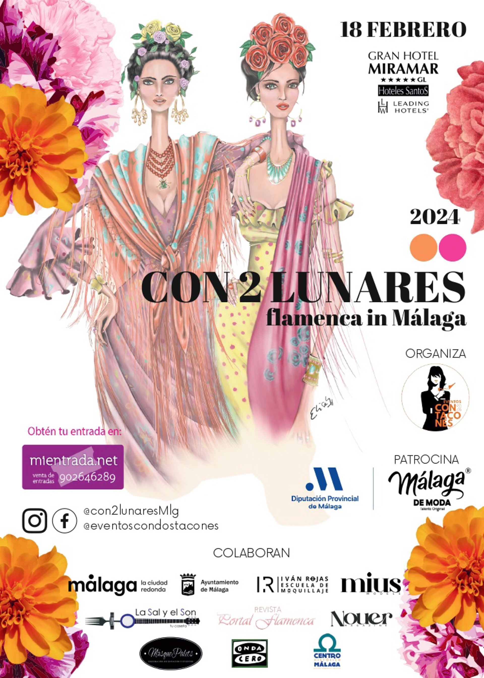 'Con dos lunares' cuenta con un cartel realizado por la ilustradora Elisa Eigh y con el apoyo del Ayuntamiento de Málaga, Gran Hotel Miramar, Onda Cero, Iván Rojas Escuela de Maquillaje, Mius Models, Asociación Centro Histórico de Málaga, La Sal y el Son, la revista Nouer, Masquepalets y Portal Flamenca, además de la colaboración especial de Ribes y Casals, que entregará un reconocimiento a la mejor modelo.