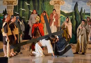 La representación de este sábado estará integrada por fragmentos de escenas como 'Encuentro de Jesús con la samaritana', 'Sermón de la montaña', 'Curación de un ciego', 'Entrada en Jerusalén', 'Arrepentimiento de Judas Iscariote', 'Poncio Pilato y el dilema del letrero', 'Calle de la Amargura' y 'Crucifixión'.
