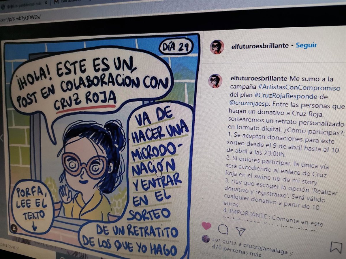 Así, a partir de este jueves y hasta el próximo día 18, cerca de 50 artistas de la pintura, la ilustración y la fotografía ofrecerán obras exclusivas desde sus perfiles de Instagram, para sumarse al llamamiento a beneficio de los proyectos de Cruz Roja Española ante la emergencia del COVID-19, para dar asistencia a familias sin recursos, personas sin hogar, mayores, desempleados y a la infancia en dificultad social.