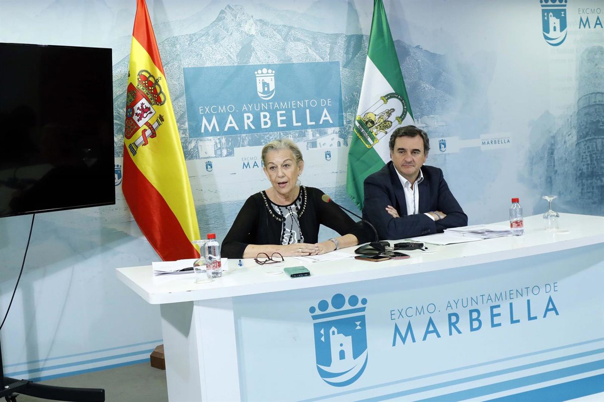 La concejala de Ordenación del Territorio y Vivienda en Marbella, María Francisca Caracuel, en rueda de prensa junto al portavoz del equipo de gobierno - AYUNTAMIENTO DE MARBELLA