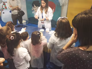 Ataviados como científicos, los más pequeños adquieren la capacidad de identificar y reconocer procesos físicos más complejos con divertidos experimentos, como por ejemplo el inflamiento de globos con vinagre, colores comunicantes --sobre la capilaridad de los líquidos--, bolsa de plástico a prueba de fugas --gracias a las propiedades del polietileno de baja densidad--, o la elaboración "casera" de masa 'slime'.
