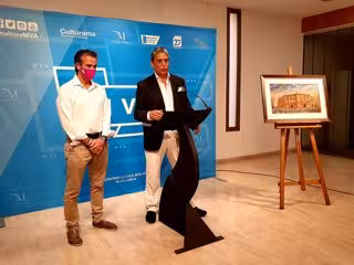 El diputado de Cultura, Víctor González, ha estado junto al autor en la rueda de prensa en la que se ha dado a conocer la obra, titulada 'La Malagueta' y que la Diputación ha adquirido para incorporarla a su patrimonio y por tanto, a los fondos de arte del que dispone y que se puede visitar tanto en el Mad de Antequera (Málaga) como en los distintos edificios pertenecientes a la institución.