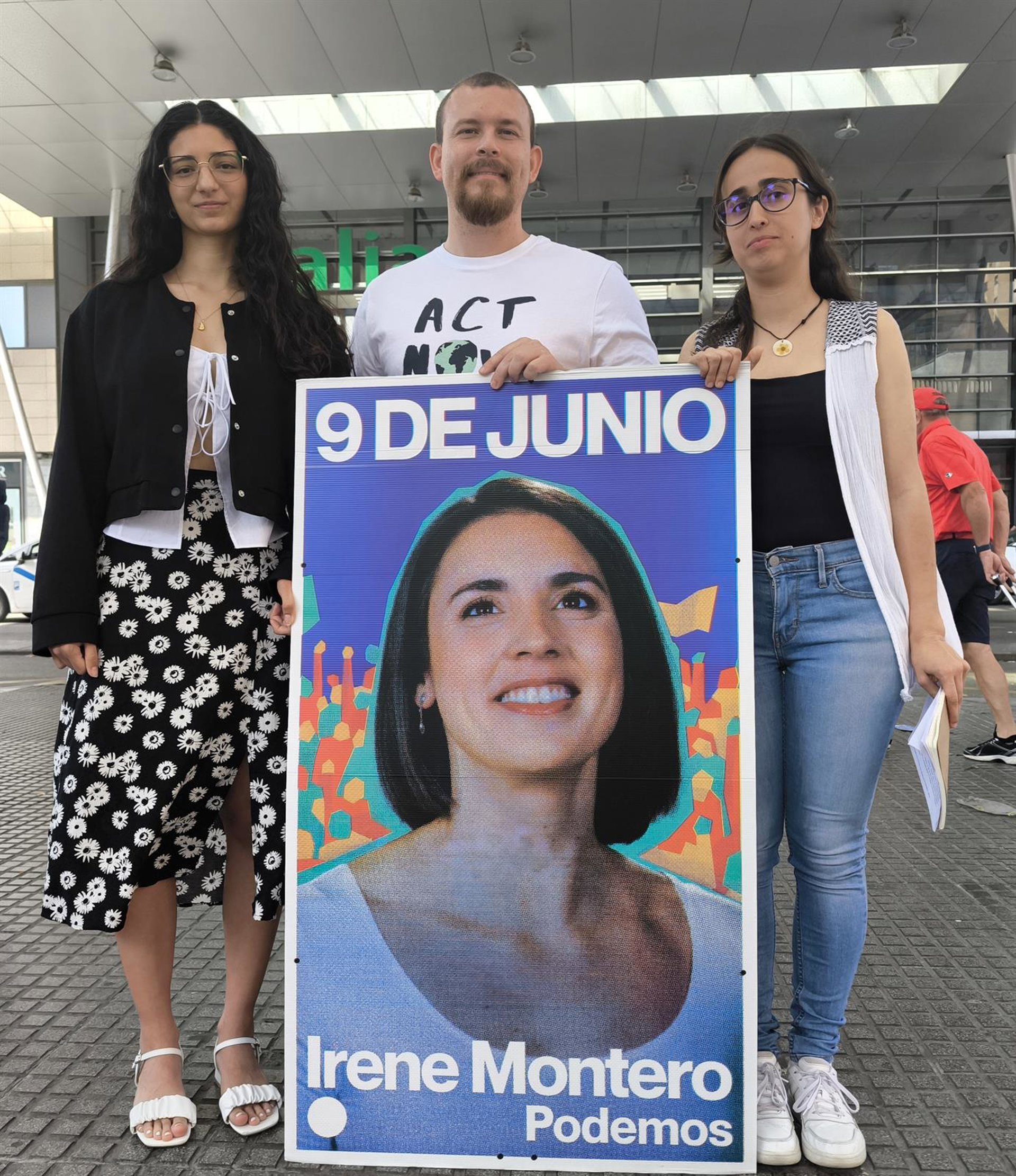 Milagros Mayoral, de Juventud Podemos Andalucía, junto a los candidatos del partido morado a las elecciones europeas Adrián García y Alba Ramos. - PODEMOS