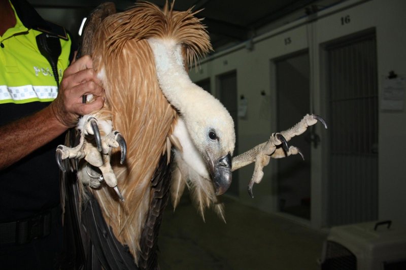 Efectivos del Grupo de Protección de la Naturaleza (Gruprona) de la Policía Local de Málaga han recuperado un buitre leonado que se encontraba en la terraza de una vivienda situada en una octava planta.