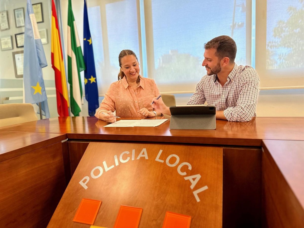 El concejal de Seguridad Ciudadana, José Luis Ponce, y la concejala de Hacienda, Rosa Ana Bravo, en la sede de la Policía Local de Fuengirola. - AYUNTAMIENTO DE FUENGIROLA