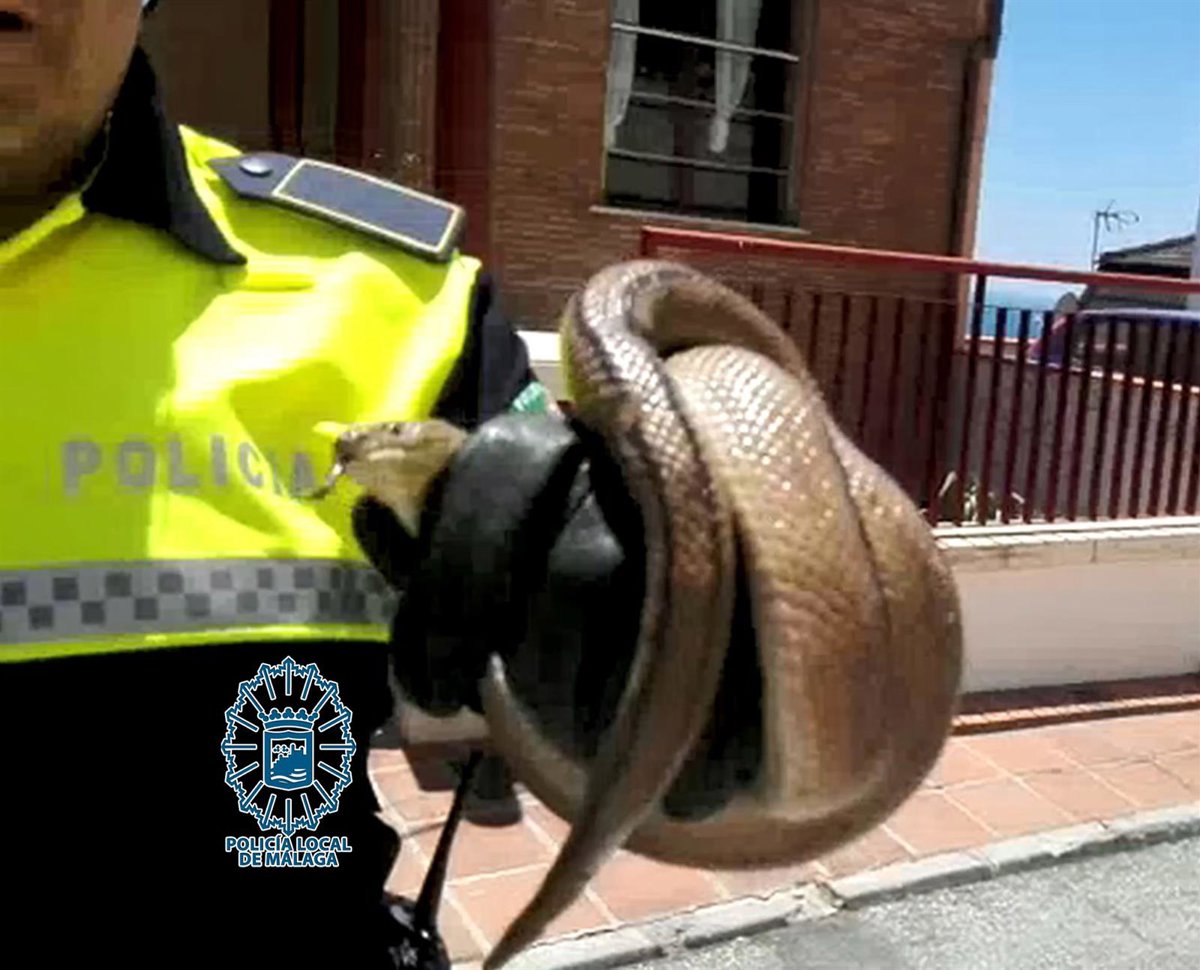 Agentes del Grupo de Protección de la Naturaleza (Grupona) de la Policía Local de Málaga han capturado tres serpientes de considerable tamaño en el transcurso de cinco días, concretamente una culebra de escalera y dos de herradura.