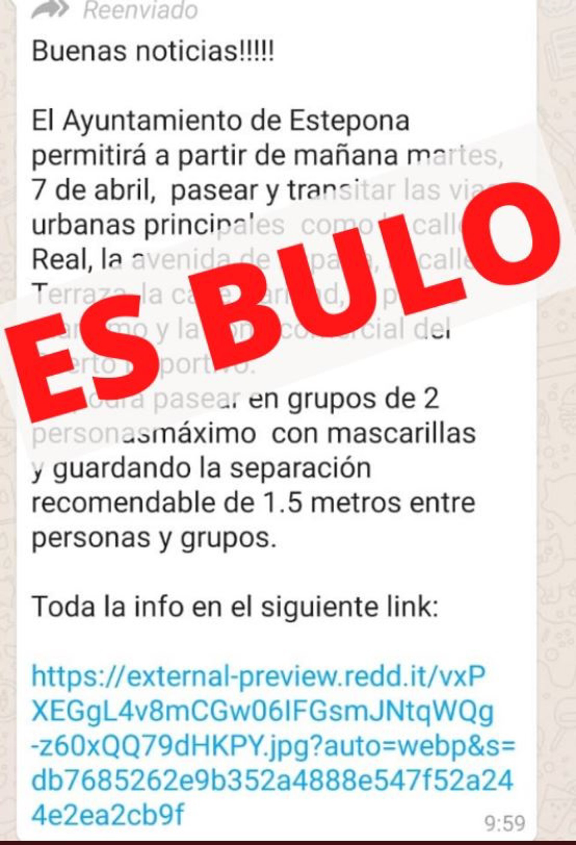Este pasado lunes, también se desmintió otro bulo que corría por las redes sociales y de mensajería instantánea sobre contagios de empleadas de un hipermercado de Estepona; algo totalmente falso.
