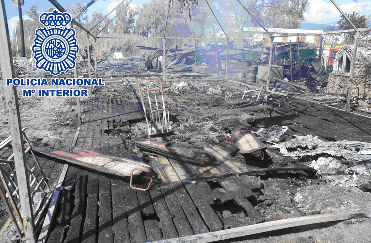 Según la Policía Nacional, un vigilante del establecimiento de playa fue sorprendido por unos asaltantes. Tras exigirle dinero y sustraerle el teléfono móvil, éstos prendieron fuego a un colchón ubicado en la cocina, propagándose las llamas rápidamente por todo el local.