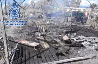 Los responsables del incendio liberaron al vigilante a unos 500 metros del establecimiento en la autovía, han apuntado desde la Comisaría, señalando que el chiringuito ha quedado completamente calcinado.