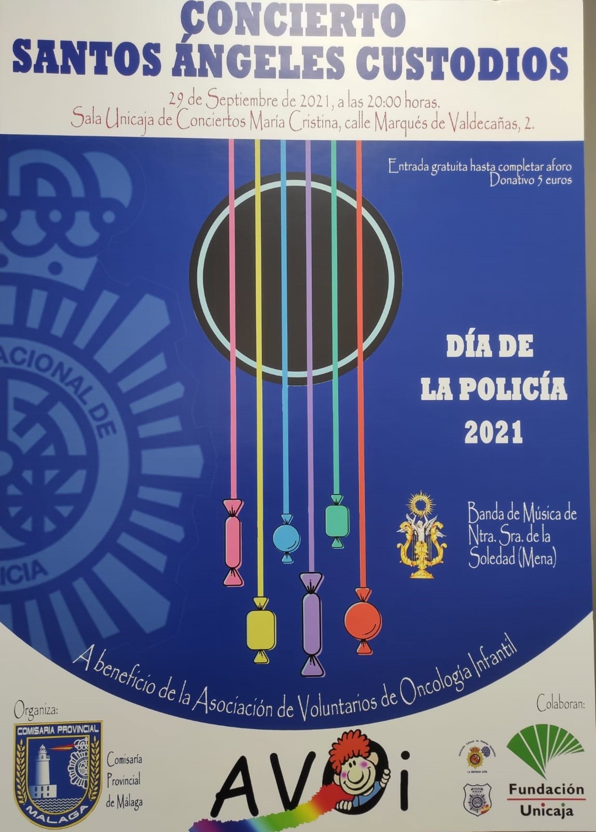 El concierto, que tendrá lugar a partir de las 20.00 horas en la Sala Unicaja de Conciertos María Cristina de la capital malagueña, se organiza con motivo del Día de la Policía 2021, coincidiendo con el patrón, los Santos Ángeles Custodios, que se celebra cada 2 de octubre.