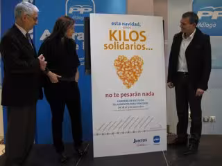 El PP de Málaga arrancará este sábado una campaña de Navidad para recoger alimentos destinados al Banco de Alimentos de la Costa del Sol (Bancosol), que atiende a un total de 50.000 personas en la provincia. Bajo el nombre 'Esta Navidad unos kilos solidarios... no te pesarán nada", una furgoneta recorrerá los 10 distritos malagueños hasta el próximo 31 de diciembre.