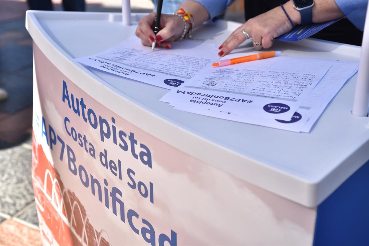 La presidenta del PP de Málaga, Patricia Navarro, ha participado este domingo en el inicio de la campaña de recogida de firmas para exigir al Gobierno de Pedro Sánchez la puesta en marcha de un plan de bonificaciones en la autopista de la Costa del Sol, al igual que ya ha hecho en otros territorios y que supondría para los usuarios de esta vía un ahorro de dinero y también de tiempo, al descargar de tráfico la A7.