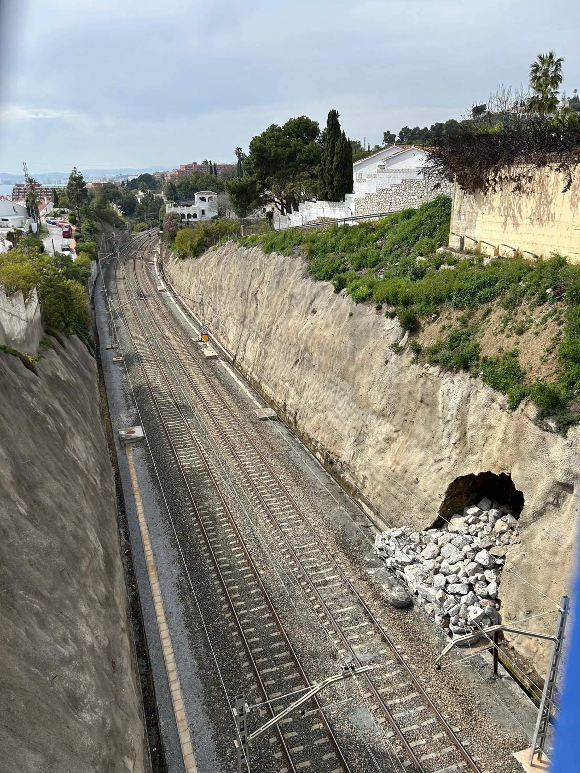 El grupo 'popular' en el Congreso registrará una pregunta para que el Gobierno explique la que califican de "nueva chapuza" con el Cercanías de la provincia, tras colocar ADIF piedras de gran tamaño para la protección tras el derrumbe parcial de un muro. - PP MÁLAGA