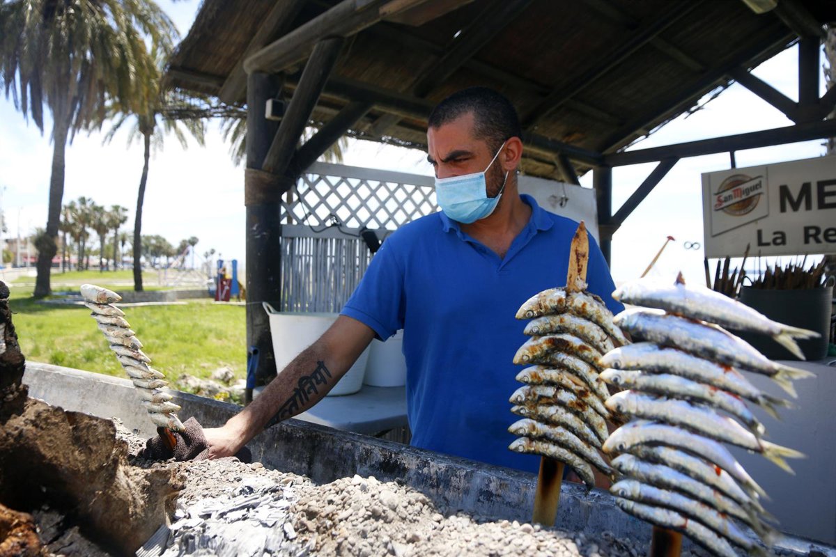 Un espetero prepara sardinas en las playas de Pedregalejo. Málaga a 20 de mayo del 2020 - Álex Zea - Europa Press