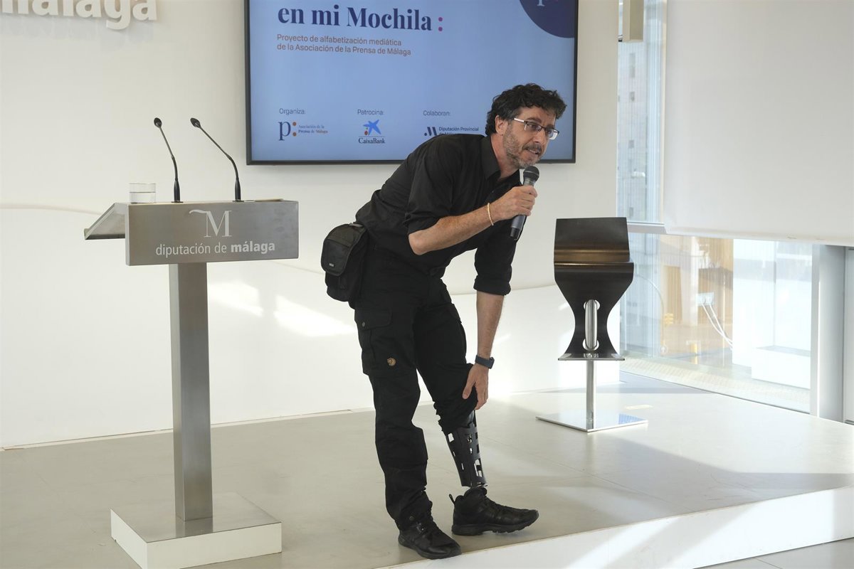 El premio Pulitzer Emilio Morenatti durante la inauguración de la quinta edición de la iniciativa 'Prensa en mi mochila' - DIPUTACIÓN DE MÁLAGA